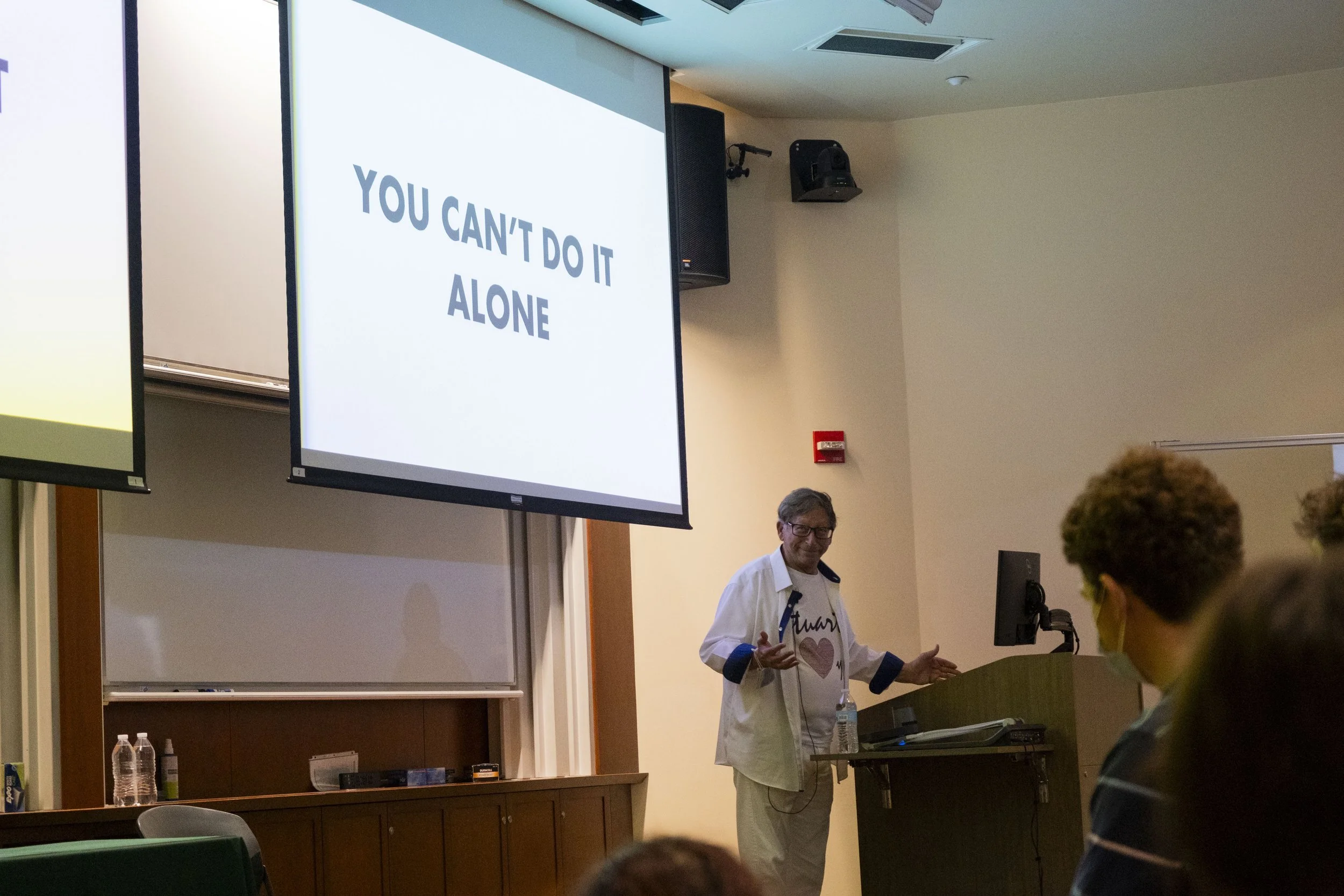 His career began with a job that he later bought out, gaining network connections and learning skills along the way. He emphasized that jobs after college serves as graduate school and advised learning from those who’ve achieved success and working alongside creative people. “You can’t do it alone,” he remarked.