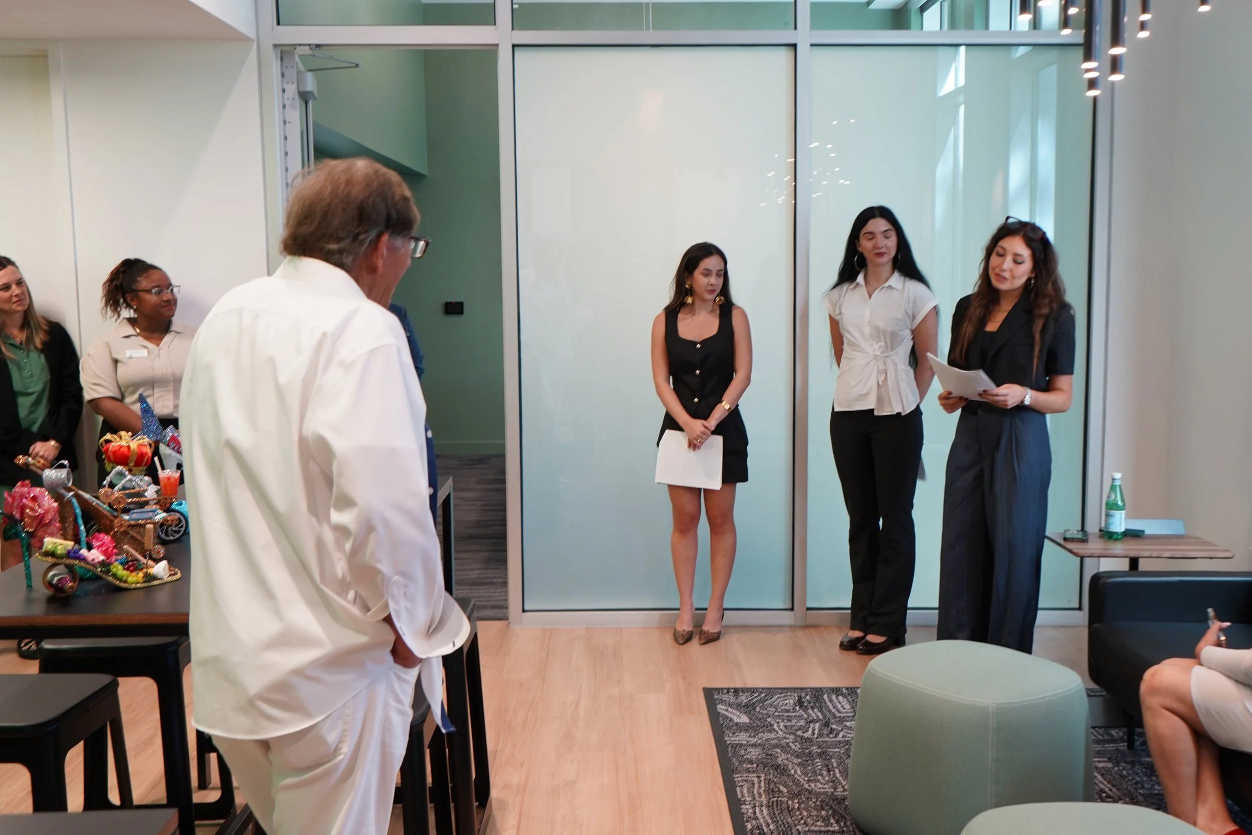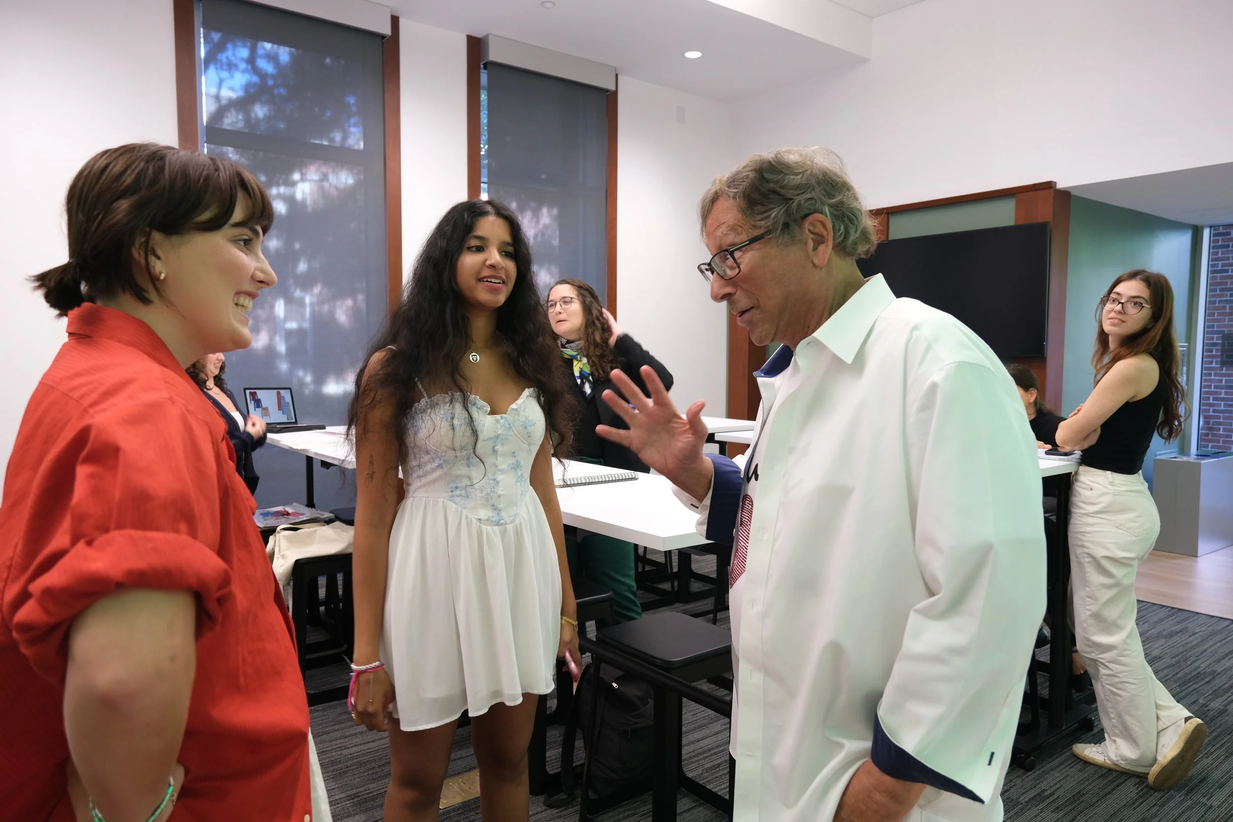 Mr. Weitzman also engaged with university leaders, including Tulane President Mike Fitts and Freeman School Dean Paulo Goes, and members of the Tulane University Fashion Club (TU Fashion). Executive board members Taylor Guillotte, Samantha Goldman, and Zoë Dupre spoke to Mr. Weitzman about the club, their individual passions, and their experiences both in and out of Tulane University.